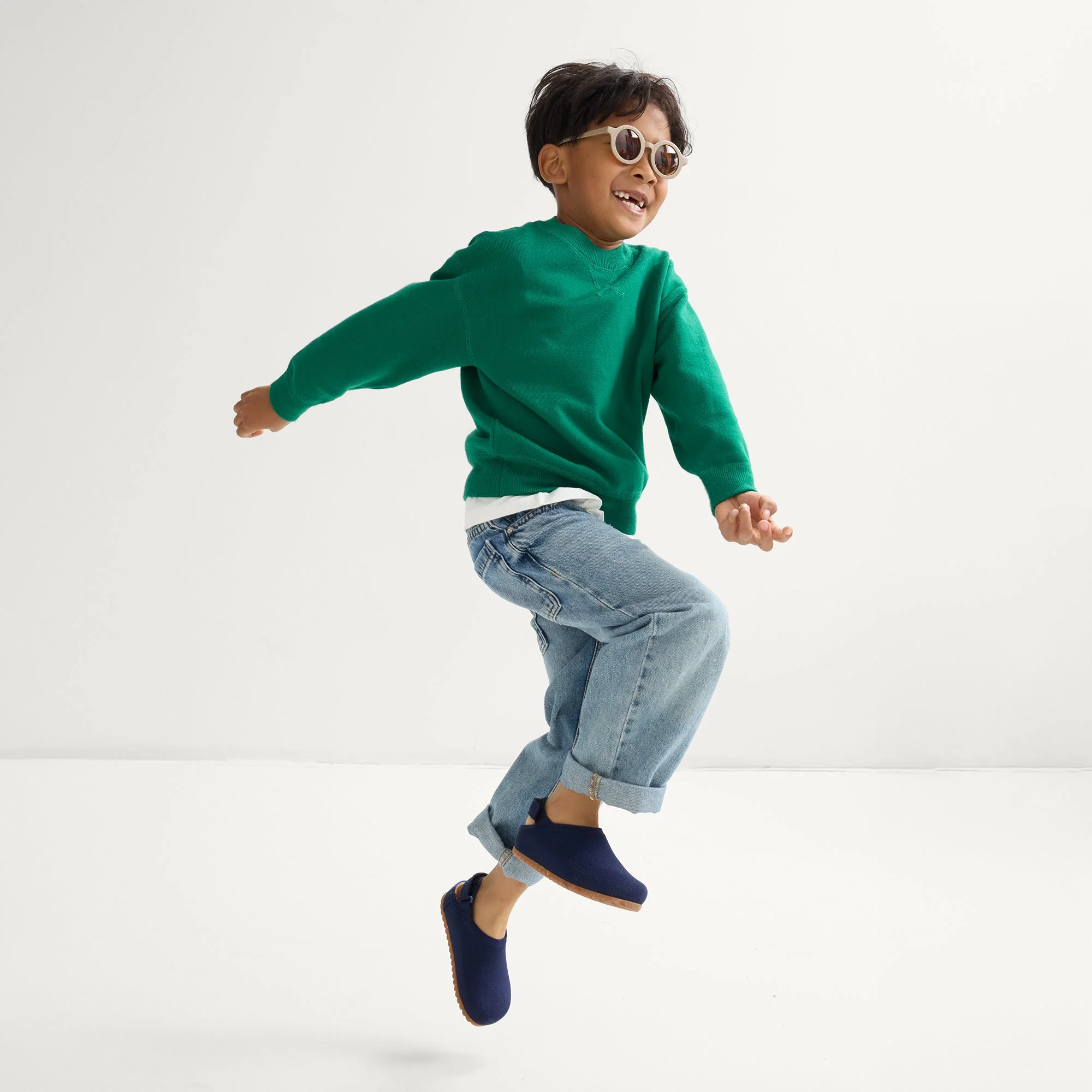 - Features a comfortable, adjustable hook & loop heelstrap in deep navy to keep their little feet secure.