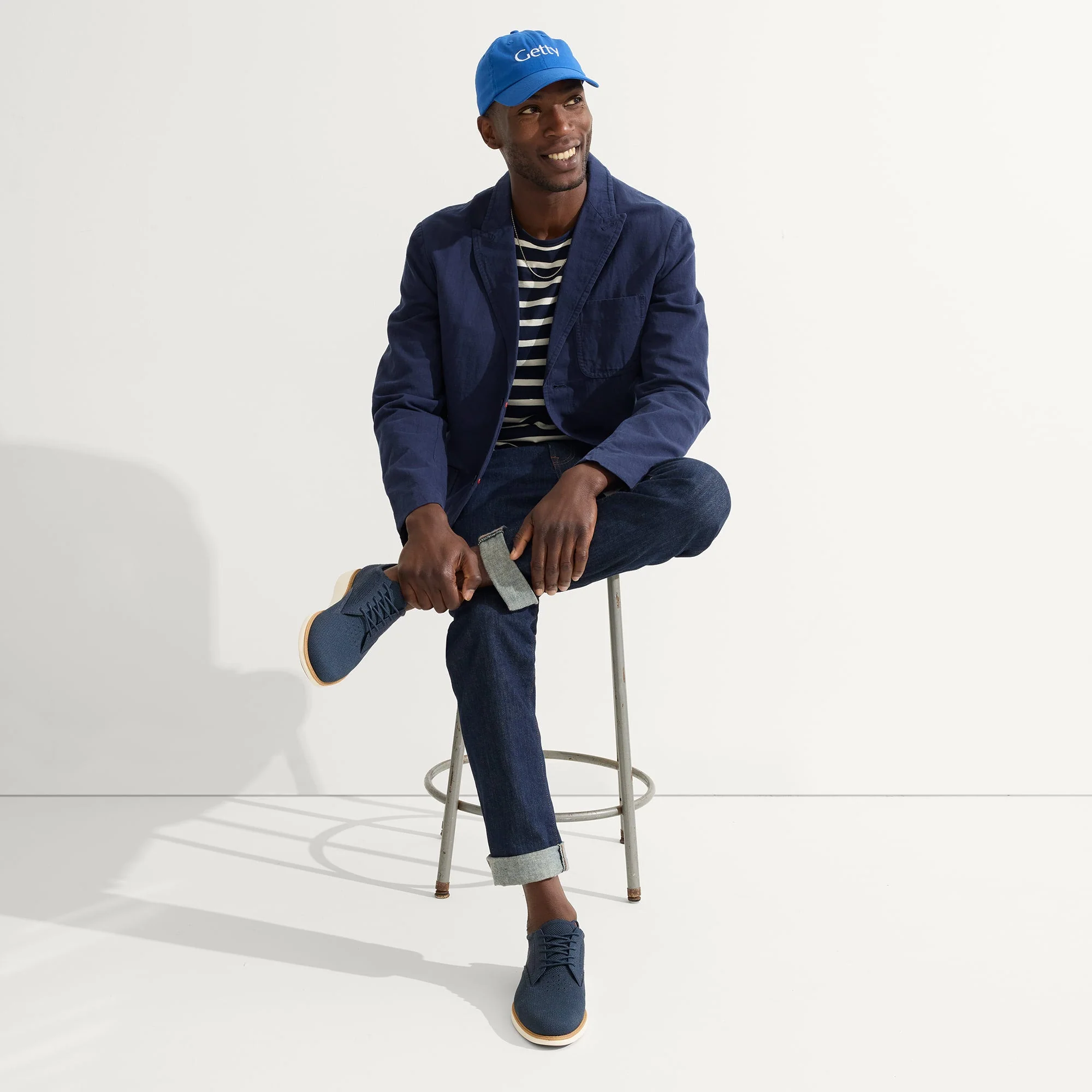 - Lightweight, Oxford-style upper in navy knit with a natural hemp blend.